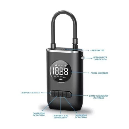 Suporta Quatro Modos de Inflação e Variadas Unidades de Pressão (PSI, BAR, KPA, kg/cm²).